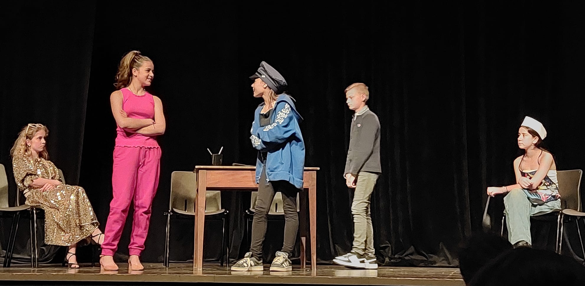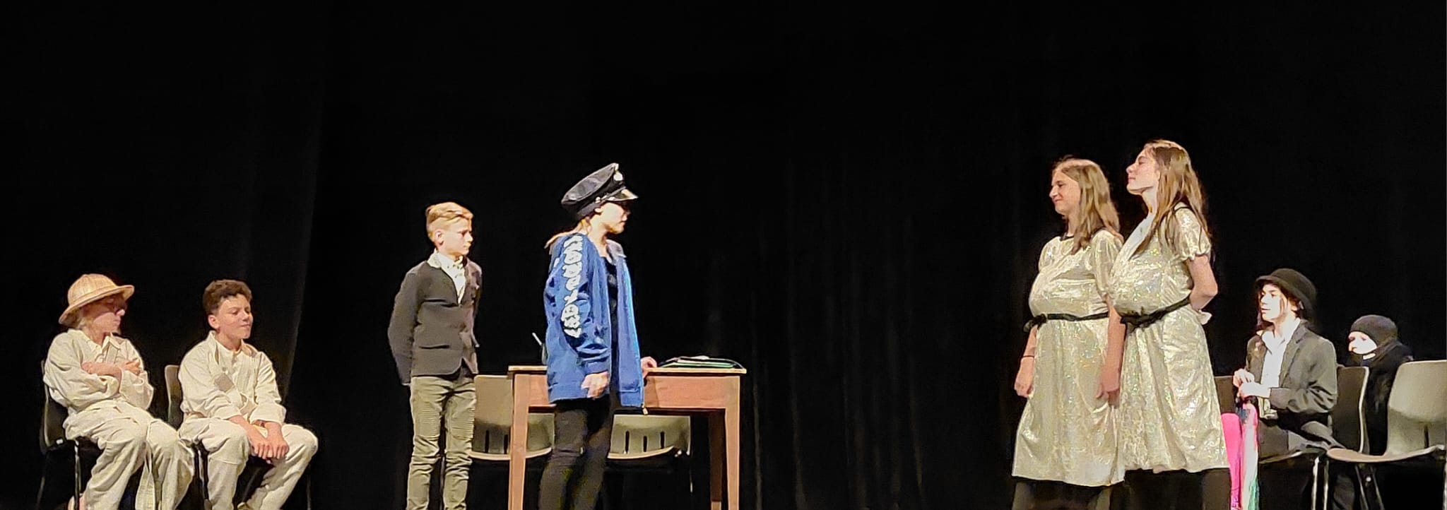 Lors de la première partie de la représentation, les élèves de sixième ont joué une pièce théâtrale humoristique intitulée « Qui a volé le sac de Madame Choumpette ? ». Ces apprentis comédiens montaient pour la première fois sur scène devant un public composé de parents et d’enseignants. Ils étaient enthousiastes malgré le trac ressenti. Lors de la deuxième partie de la représentation, les élèves de cinquième ont présenté le scénario d’une pièce de théâtre intitulée « le collier » qu’ils ont enrichi et personnalisé précédemment. Il s’agissait également d’une histoire de vol qui a été résolu par les protagonistes.