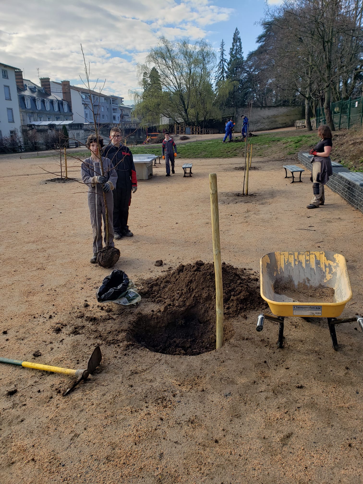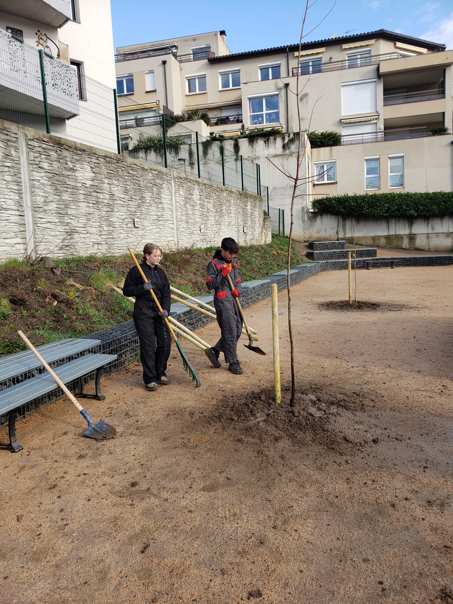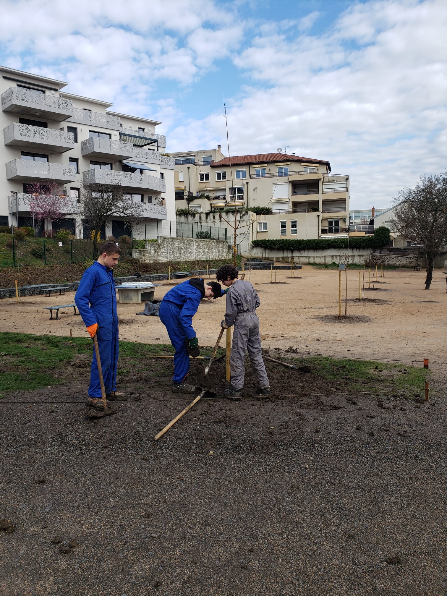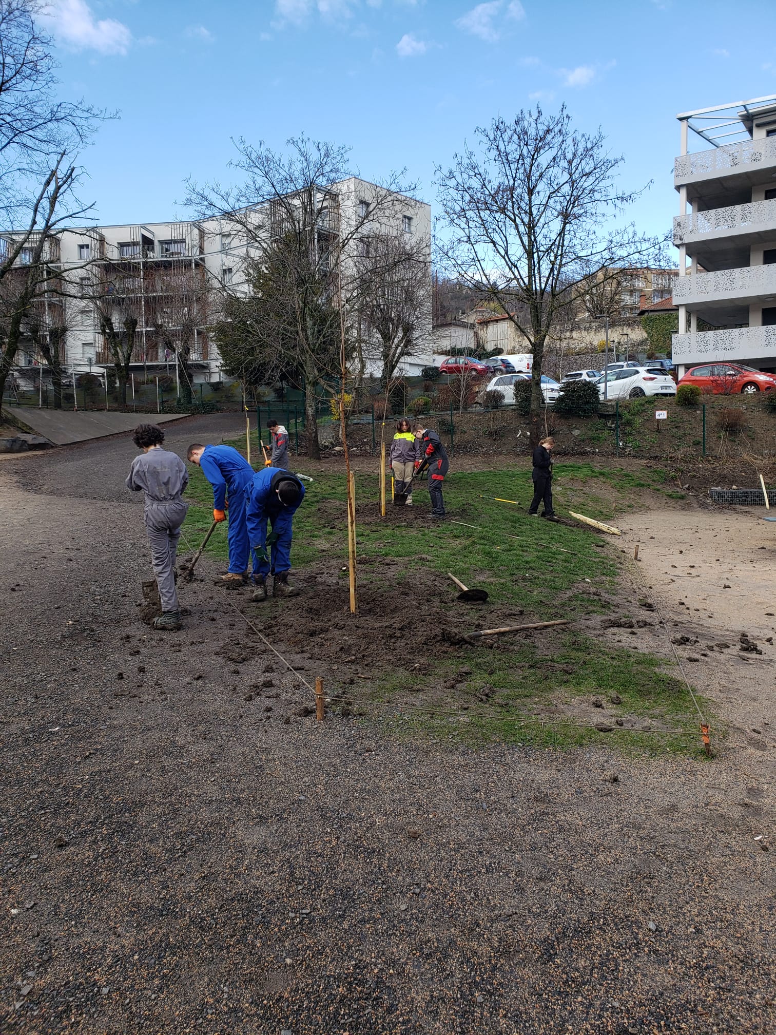 Les élèves de 4ème SEGPA du collège La Chartreuse se sont rendus chez leurs camarades de St Louis afin de planter 15 arbres dans leur cour de récréation. Cette démarche s'inscrit dans le projet d'aménagement de la cour, initié par les élèves, personnels et professeurs pour apporter de l'ombre dans ces espaces de plein air. Merci aux collégiens et à leur professeur